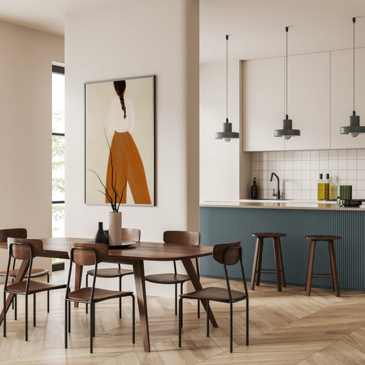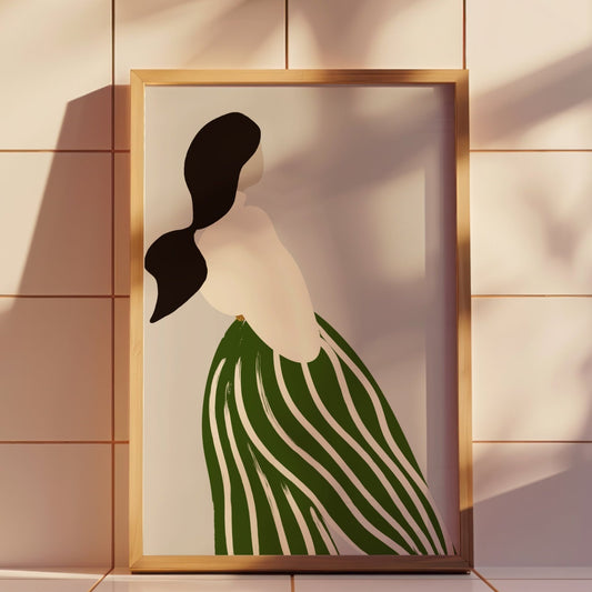Minimalistisk Poster – Kvinna i Gröna Randiga Byxor