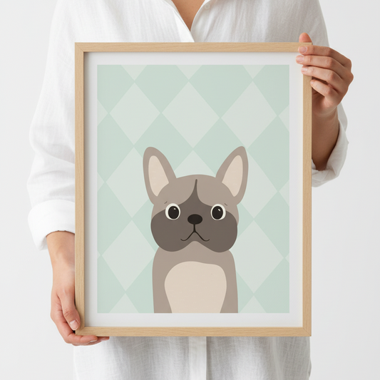 Fransk Bulldog Sage Green | Minimalistisk Hundposter | Tove Malm
