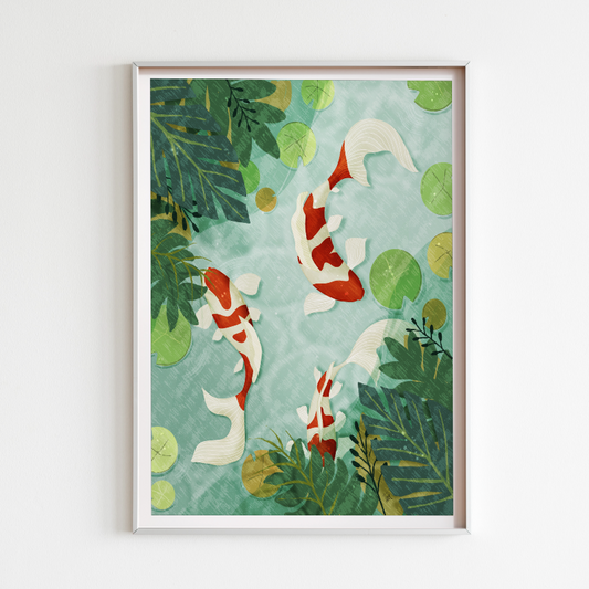 Botanisk Koi Karp Poster – Tropisk Väggkonst för Barnrum