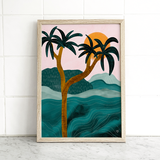Djungel Barntavla – Tropisk Poster med Sol, Grönska och Lekfull Fantasi