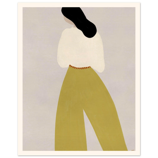 Poster med Kvinna i Gula Vida Byxor – Minimalistisk Retro Design