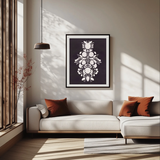 Svart Blomster Poster – Minimalistisk Folk Art för en Elegant Heminredning