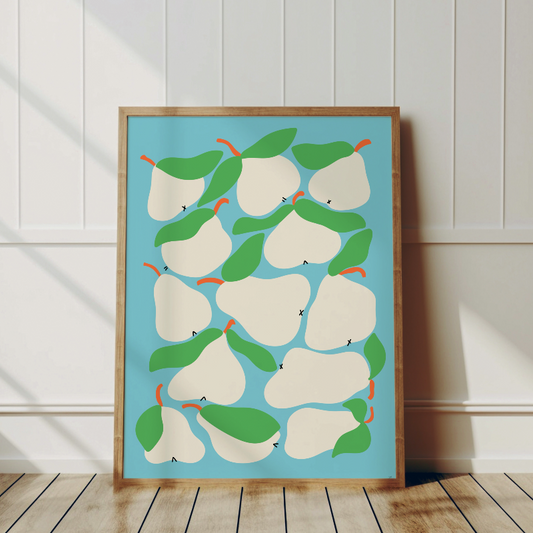 Pera – Grafisk Päronposter med ljusblå bakgrund | Modern kökskonst