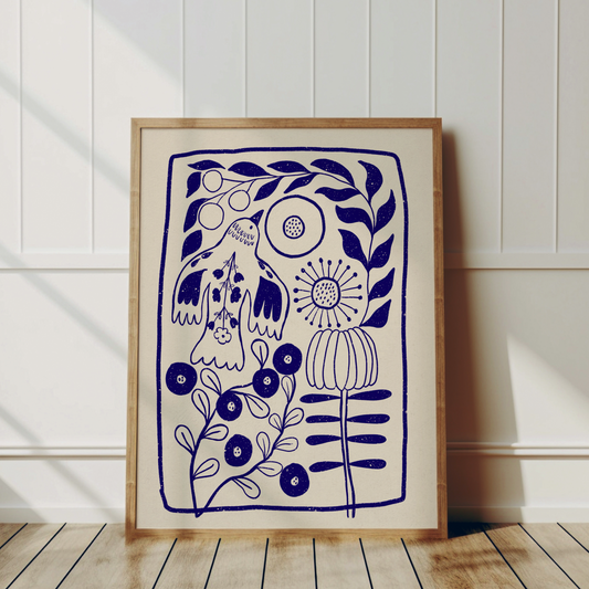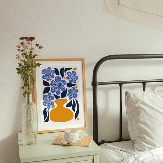 Blue Poppy – Modern Retro Poster with Vase | Graphic Botanical Wall Art