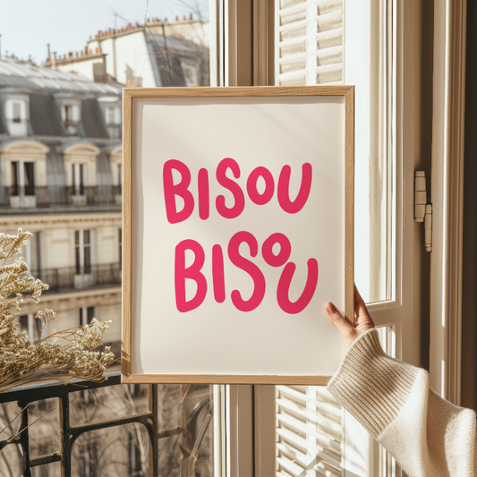 Bisou Bisou Typographic Poster – Giclée Print for Home & Office